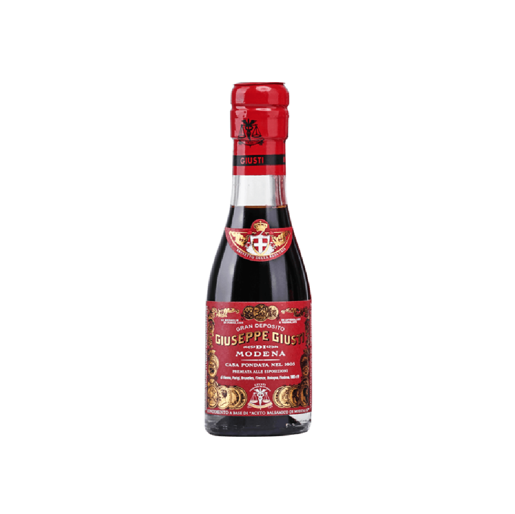 Gebaseerd op een oud recept van begin 20e eeuw. Deze balsamicoazijn met ‘3 medailles’ heeft 12 jaar mogen rijpen in de kelders van Giuseppe Giusti op oude wijnvaten van geselecteerde wijnmakers.
